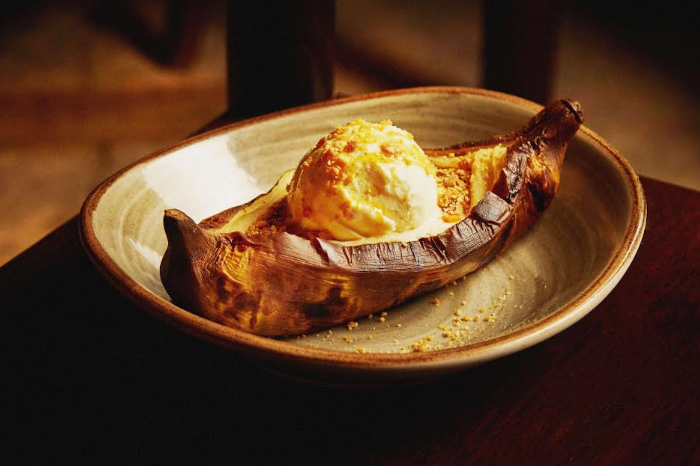 O menu começa com entradas como a Salada Mediterrânea, que combina folhas, tomates na brasa, melão, queijo, jamón e castanhas-do-Pará, ou a Empanada de Queso y Escarola, releitura de um clássico argentino. Nos pratos principais, o contraste de sabores marca presença, seja na intensidade da carne na brasa ou na leveza do pirarucu servido com pesto e purê de banana. Para finalizar, sobremesas que já fazem parte do repertório afetivo da marca, como o Pudim de Dulce de Leche e a Banana Assada com sorvete de baunilha.